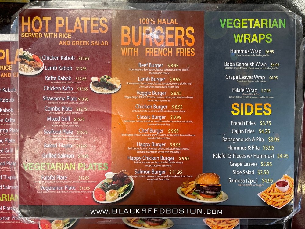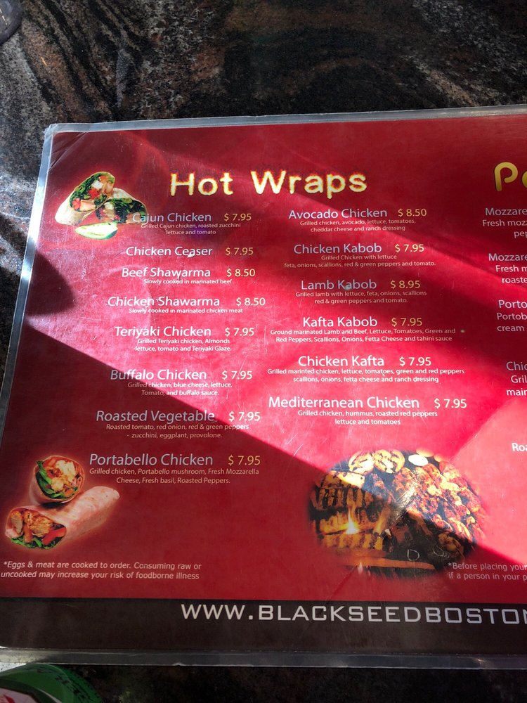 Black Seed Cafe & Grill offers a diverse Middle Eastern menu with a focus on falafel and Halal dishes. Located in Boston, MA, this casual eatery provides options for takeout, delivery, and catering. The menu features hot wraps like the Super Chicken Shawarma Wrap and Lamb Kabob Wrap, along with unique items like Chicken Shawarma Fries and Beef Burger with Fries. Reviewers praise the delicious flavors and generous portions, with highlights including the fresh ingredients, flavorful sauces, and quick service. Whether you're a meat lover or a vegetarian, Black Seed has something for everyone, making it a go-to spot for a satisfying and authentic Middle Eastern dining experience.